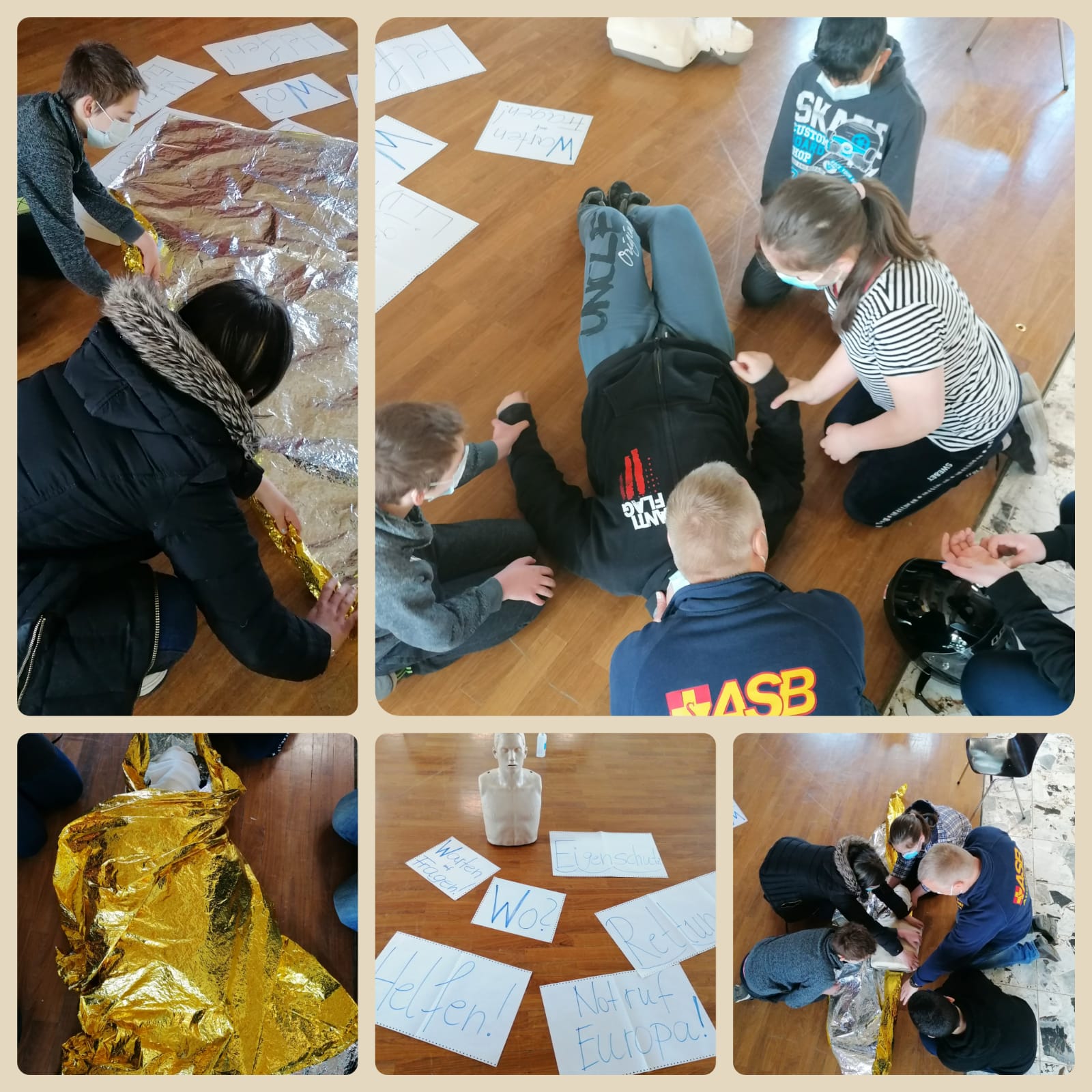 Mit einem Erste-Hilfe-Kurs machen sich unsere Kinder der Klasse 7 auf den Weg in die Schulsanitäter-Ausbildung. Dieser Kurs findet in Zusammenarbeit mit dem ASB / Frank Schönbach unter Coronabedingungen statt.