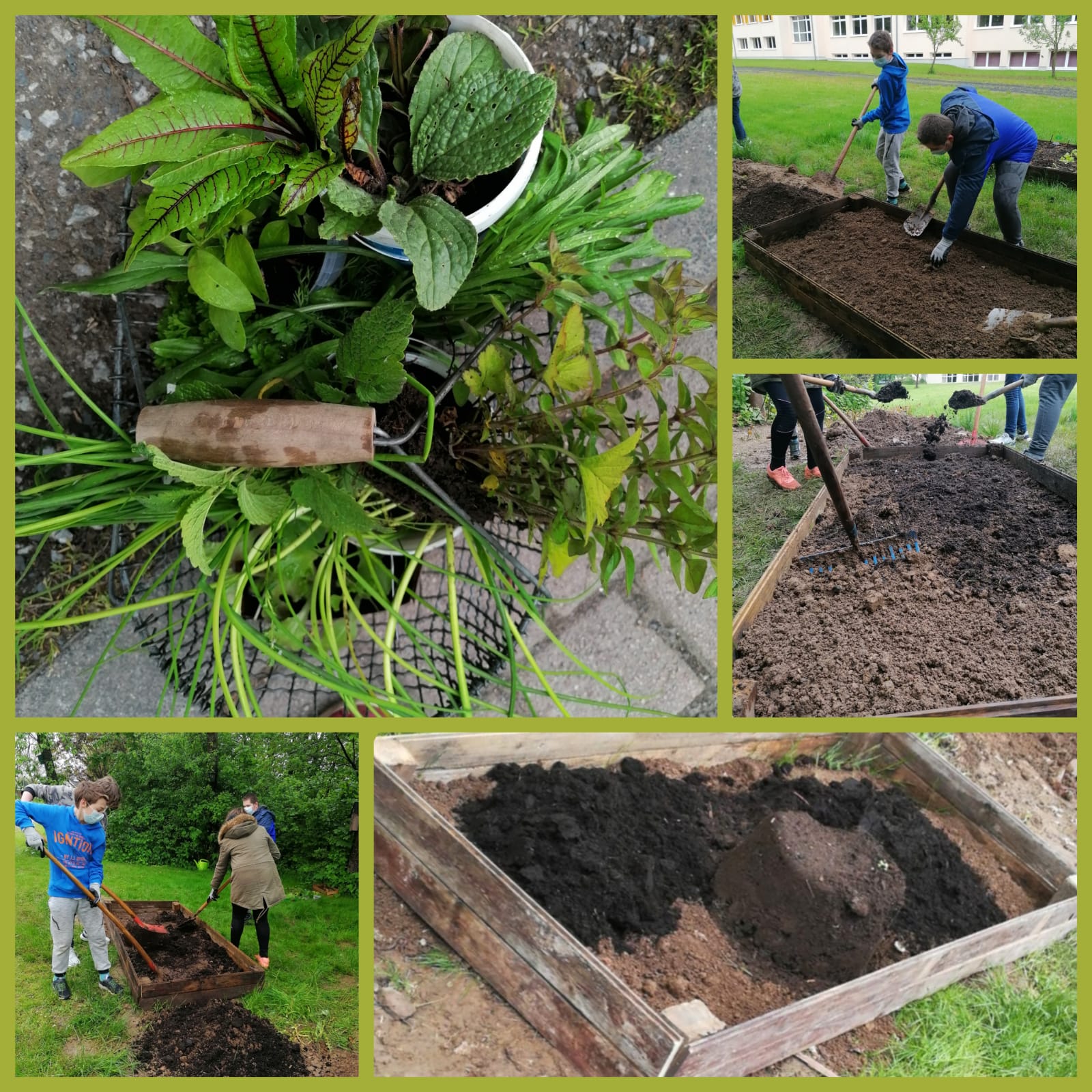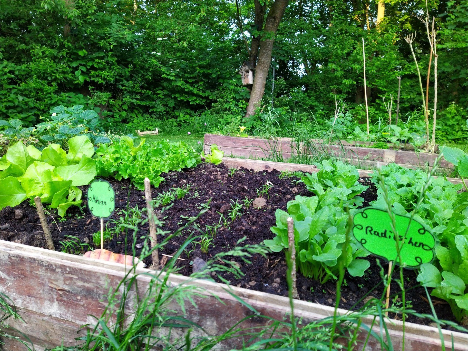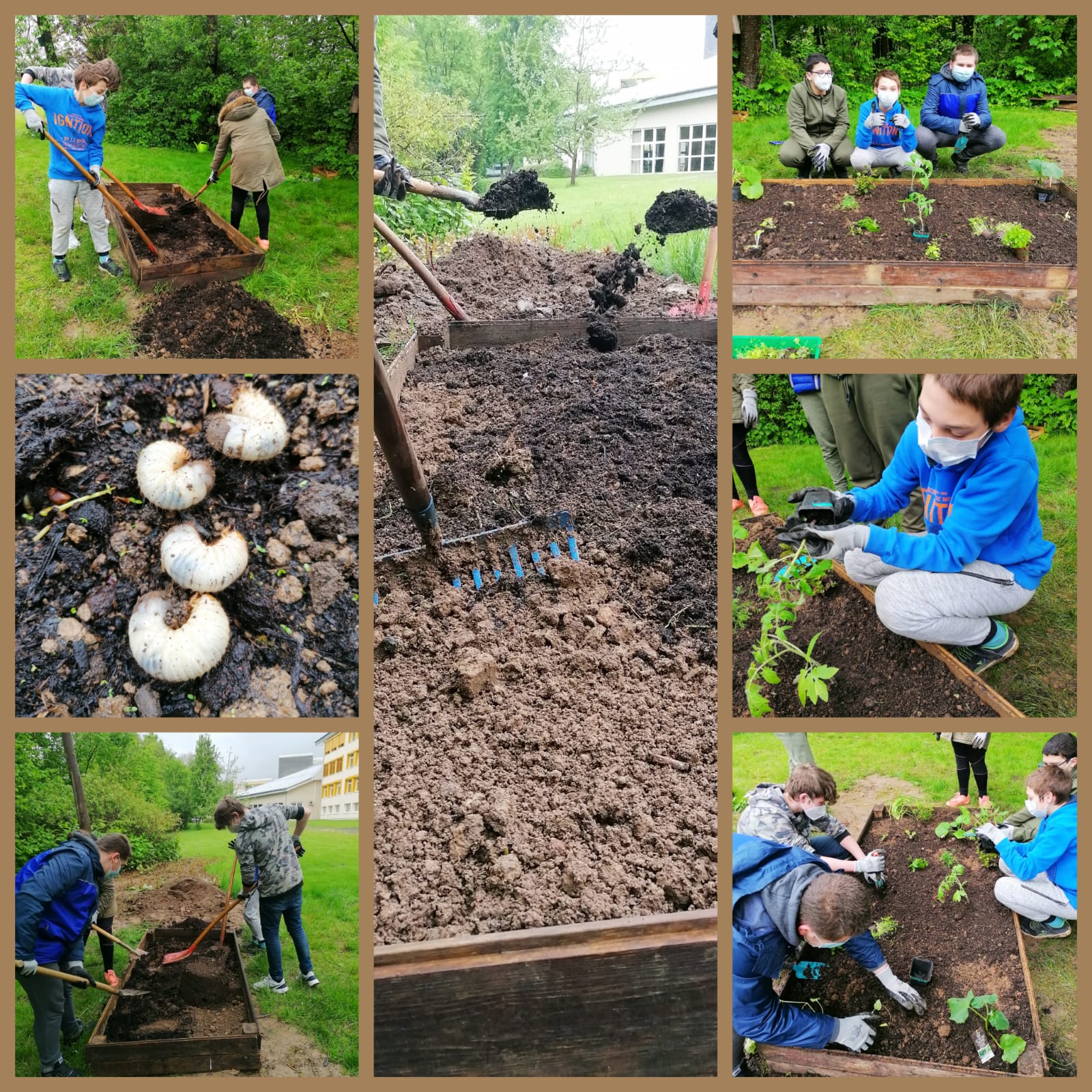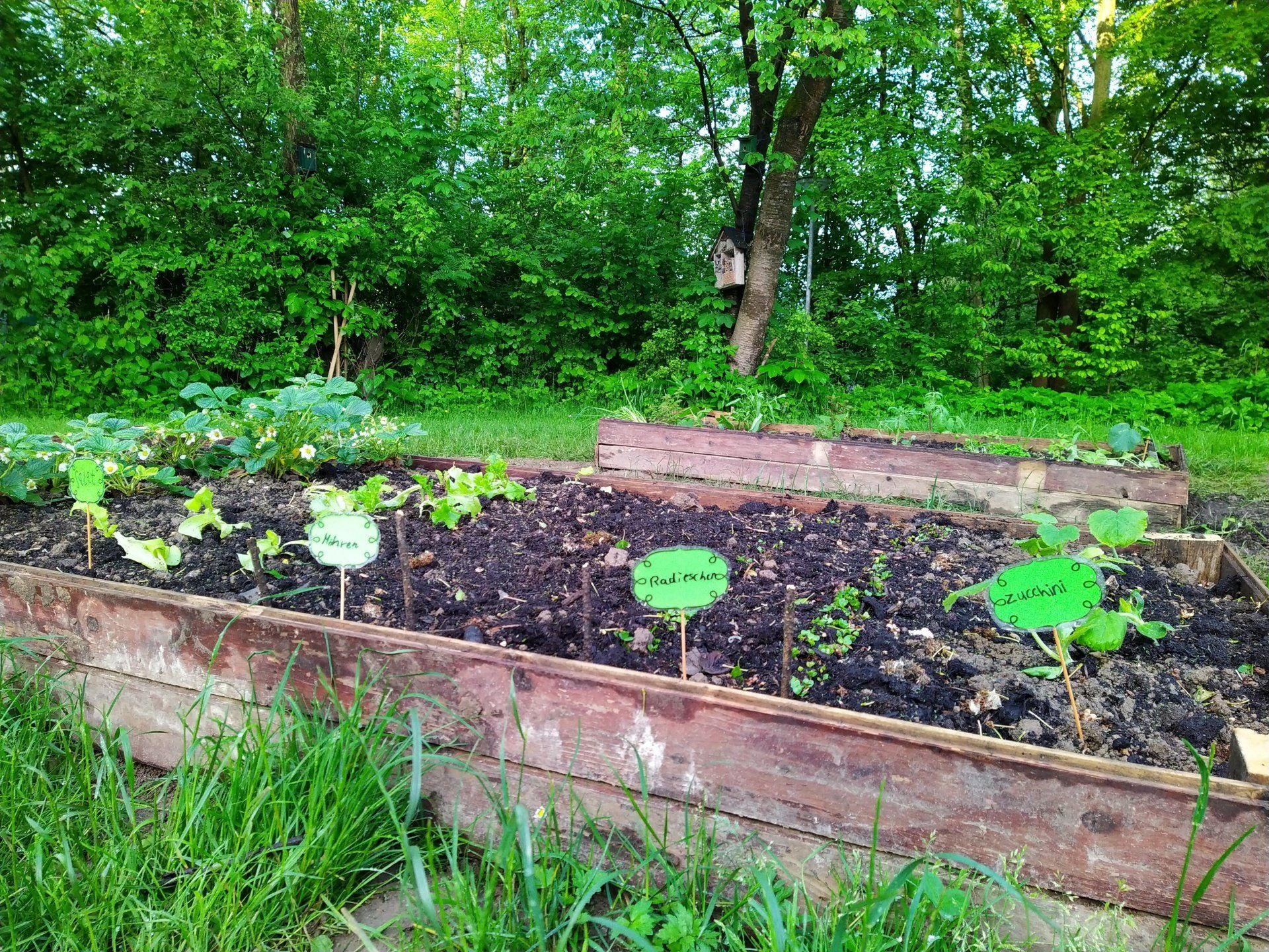In diesem Jahr haben unsere Klassen 6 und 7 mit der Anlage eines Schulgartens begonnen. Sie haben einen Blühstreifen für unsere Bienen angelegt, sie haben Pflanzen in Töpfen vorgezogen, und sie haben mittlererweile 2 Gemüsebeete bepflanzt.