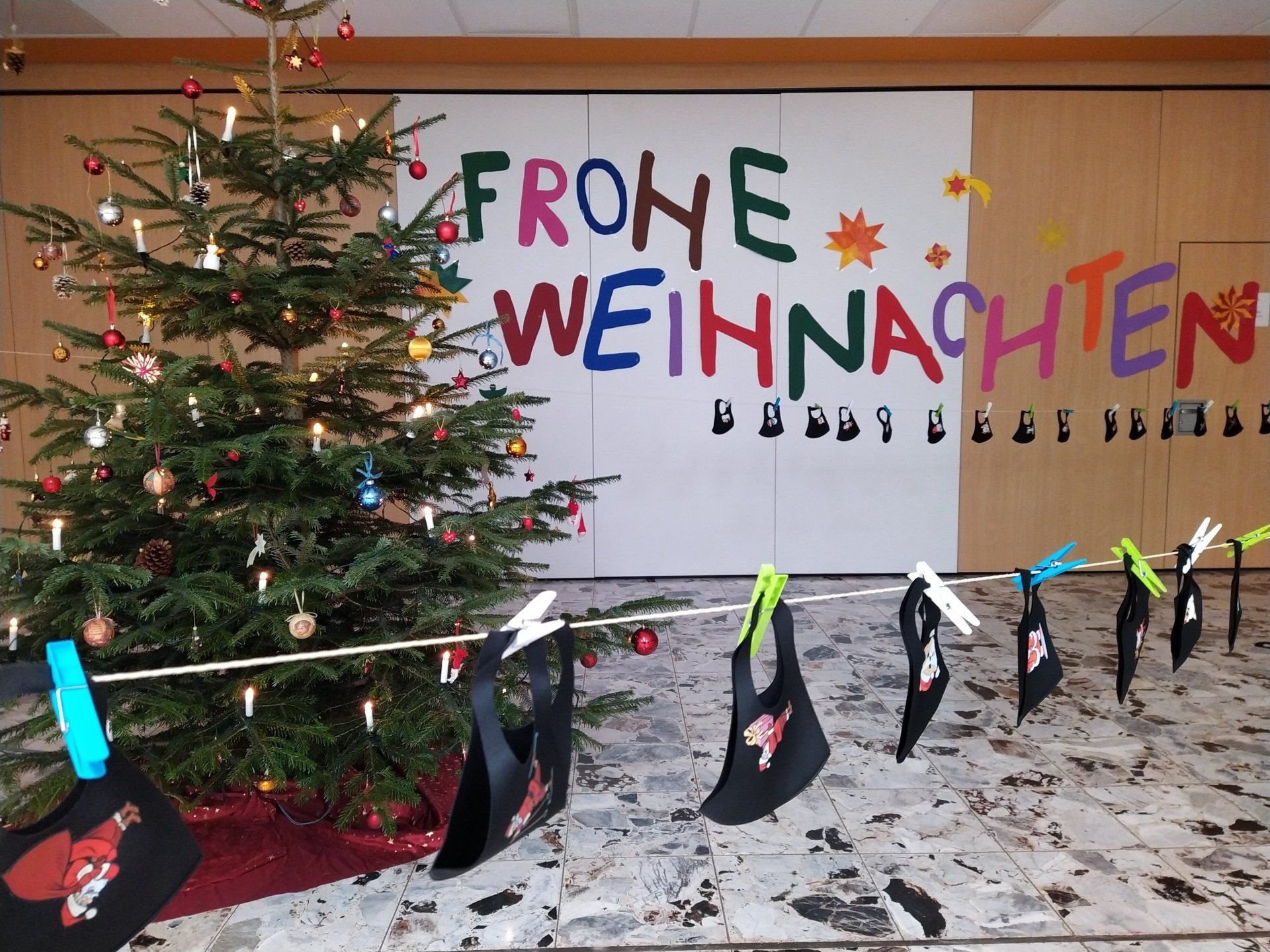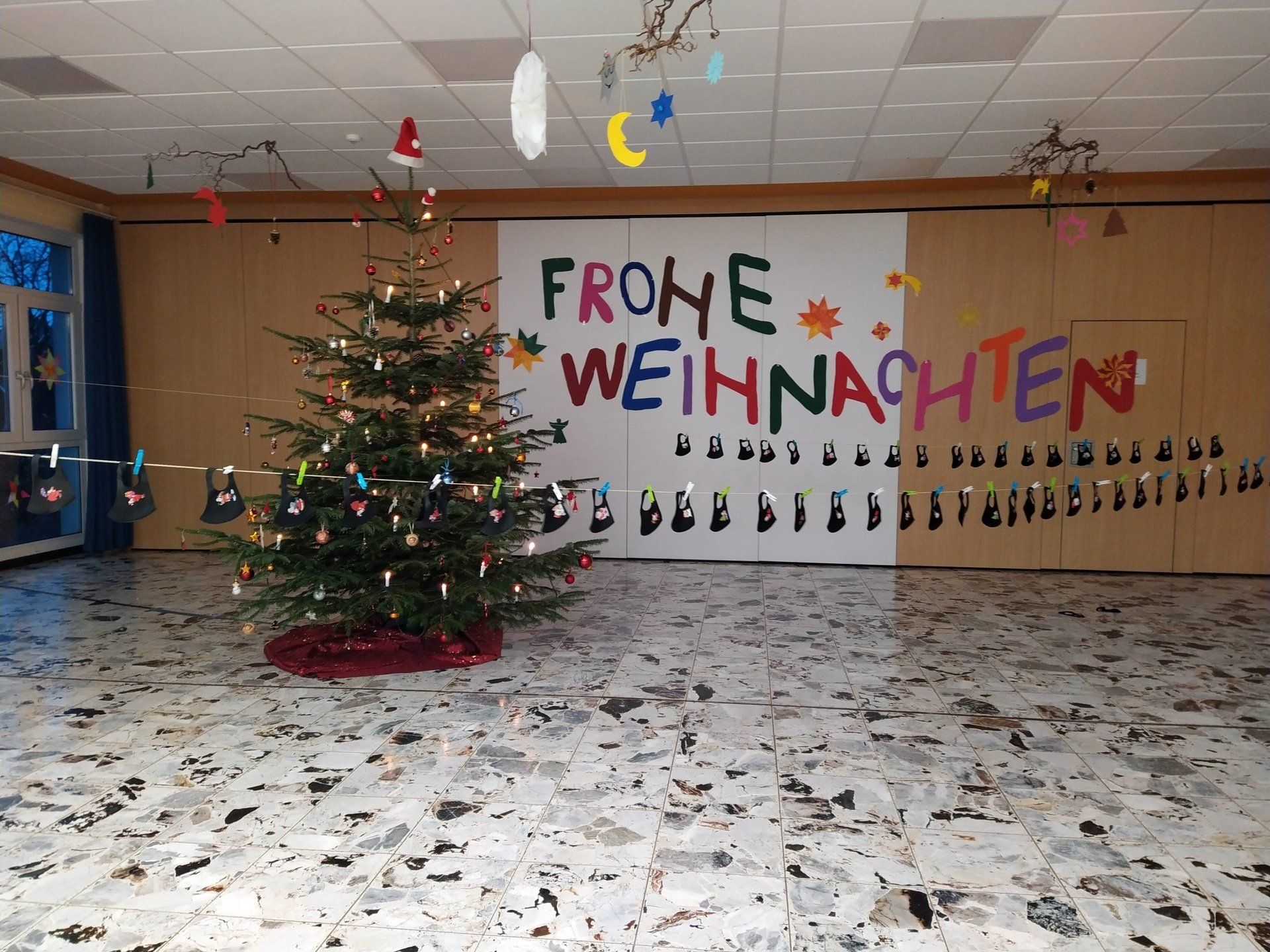 Trotzdem haben wir einen wunderschönen Weihnachtsbaum in unserer Aula ...